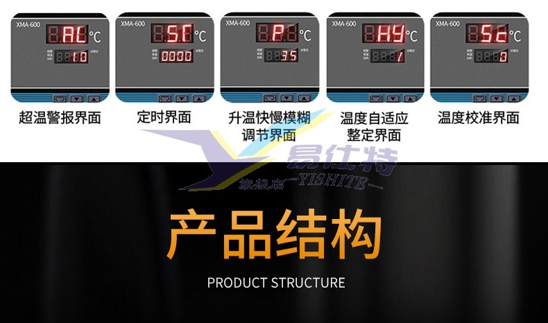 溫控器:溫(wen)度控制器采(cǎi)用觸摸按鍵(jian)、數顯LED顯示、P.I.D智(zhì)能控制儀表(biǎo)