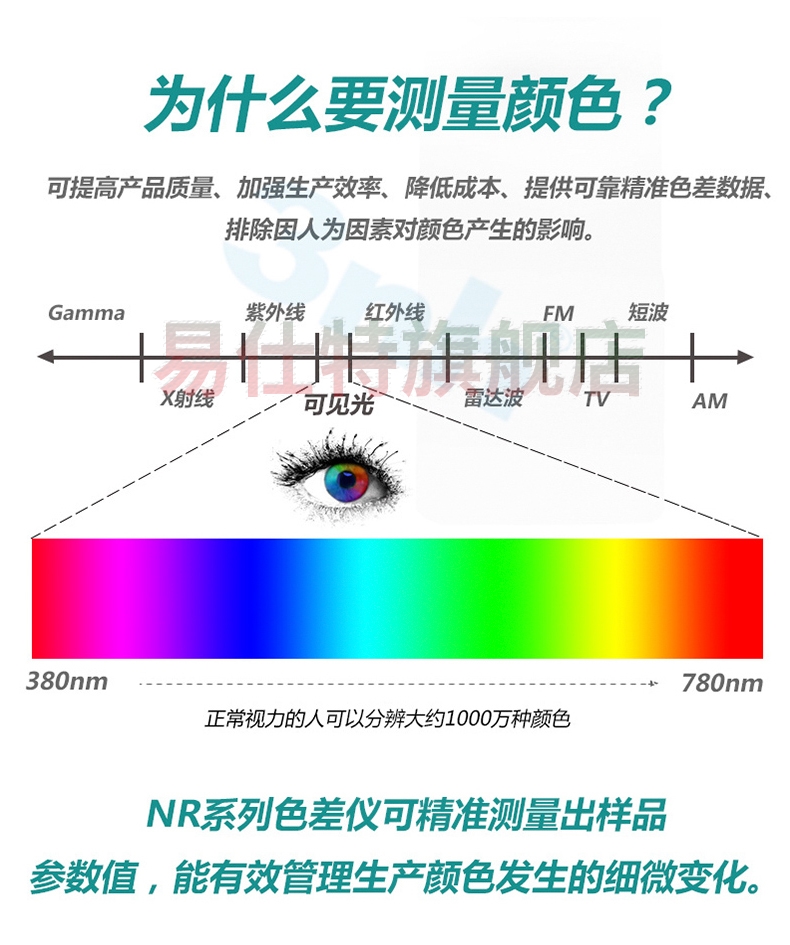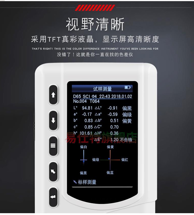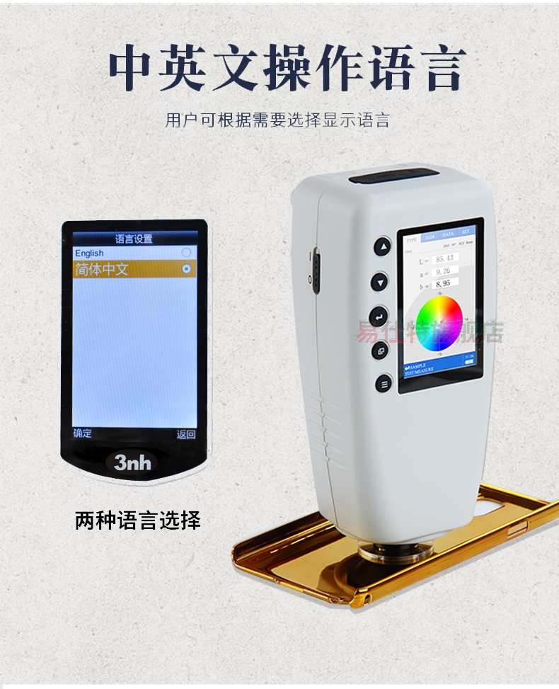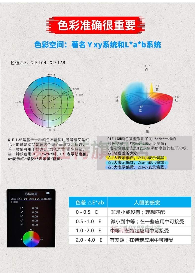 高精度色(se)差儀,廣泛應用于(yú)塑膠、印刷、油漆油(you)墨、紡織、印染✔️服裝(zhuāng)等行業的顔色管(guǎn)理領域,根據CIE色空(kōng)間的Lab,Lch原理,測量顯(xian)示出樣品♈與被測(ce)樣品的色差△E以及(ji) △Lab值。适合企業内⭐、外(wài)部色彩評價和數(shu)據管控。