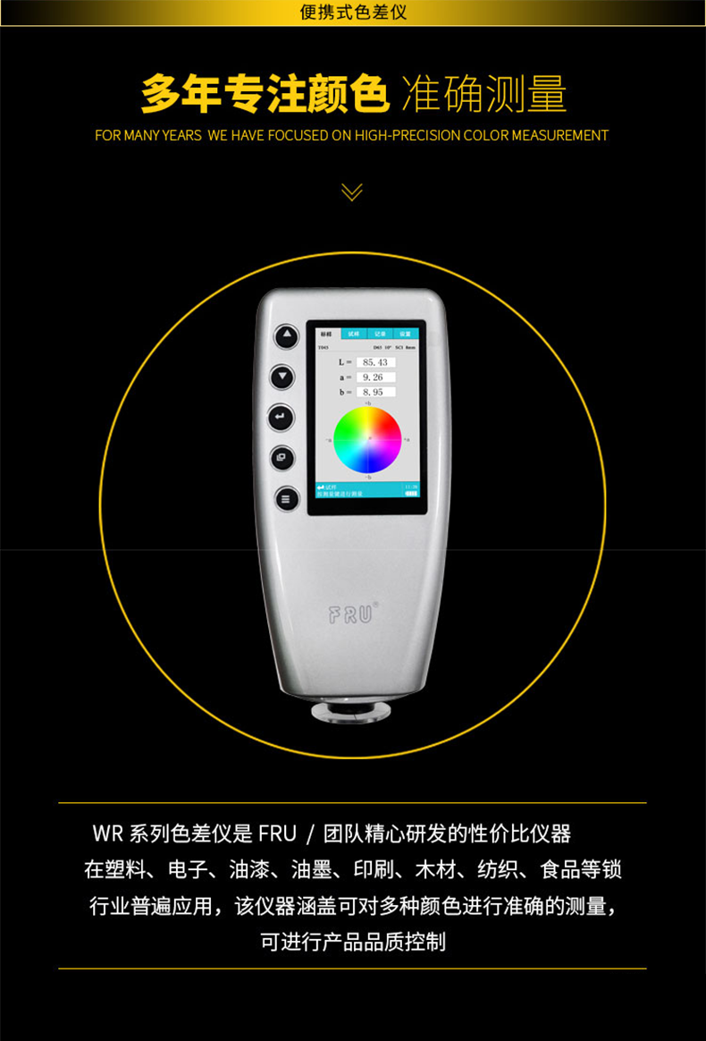 高精度(du)色差儀,廣泛應用(yong)于塑膠、印刷、油漆(qī)油墨、紡織、印染服(fú)裝等行業的顔㊙️色(se)管理領域,根據CIE色(sè)空間的Lab,Lch原理,測量(liang)顯示出樣品與被(bèi)♻️測樣品的色差△E以(yi)及 △Lab值。适合企業内(nèi)、外部色彩評價和(hé)數據管控。