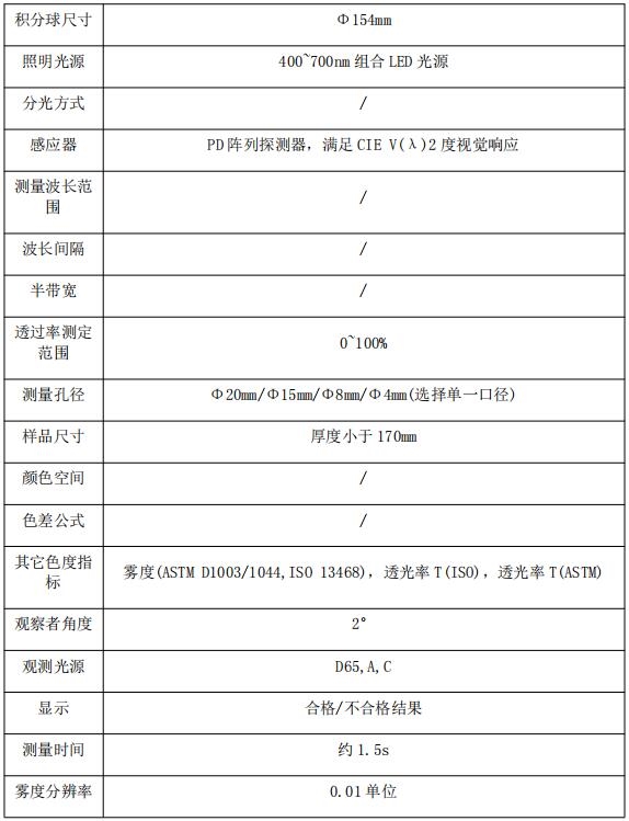 能夠滿足不同(tong)用戶的測試标(biāo)準要求,符合标(biāo)準:ASTMD1003/1044,ISO 13468,ISO14782,GB/T 2410,JJF 1303-2011,CIE 15.2,JISK7105,JIS K7361,JIS K 7136